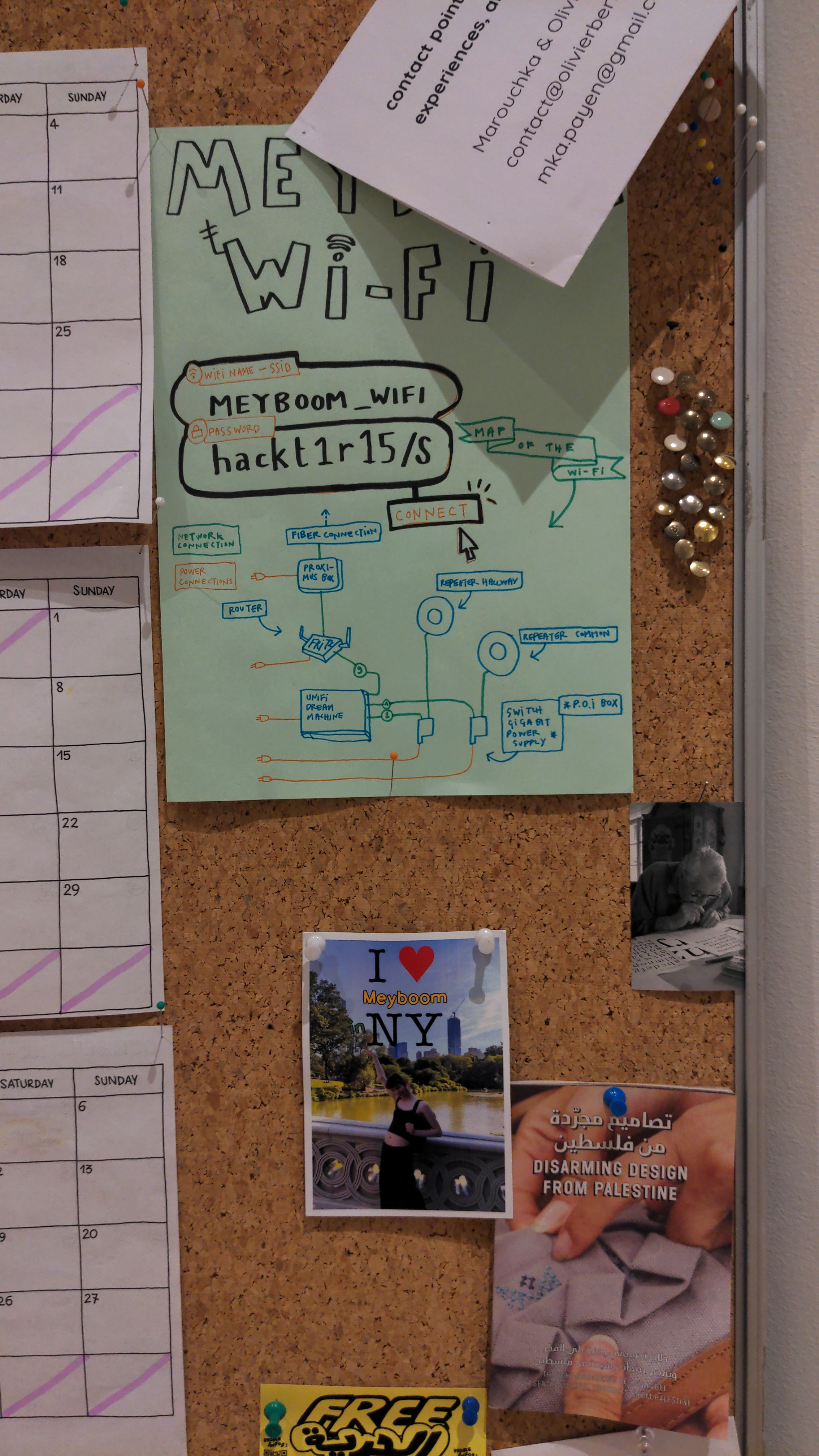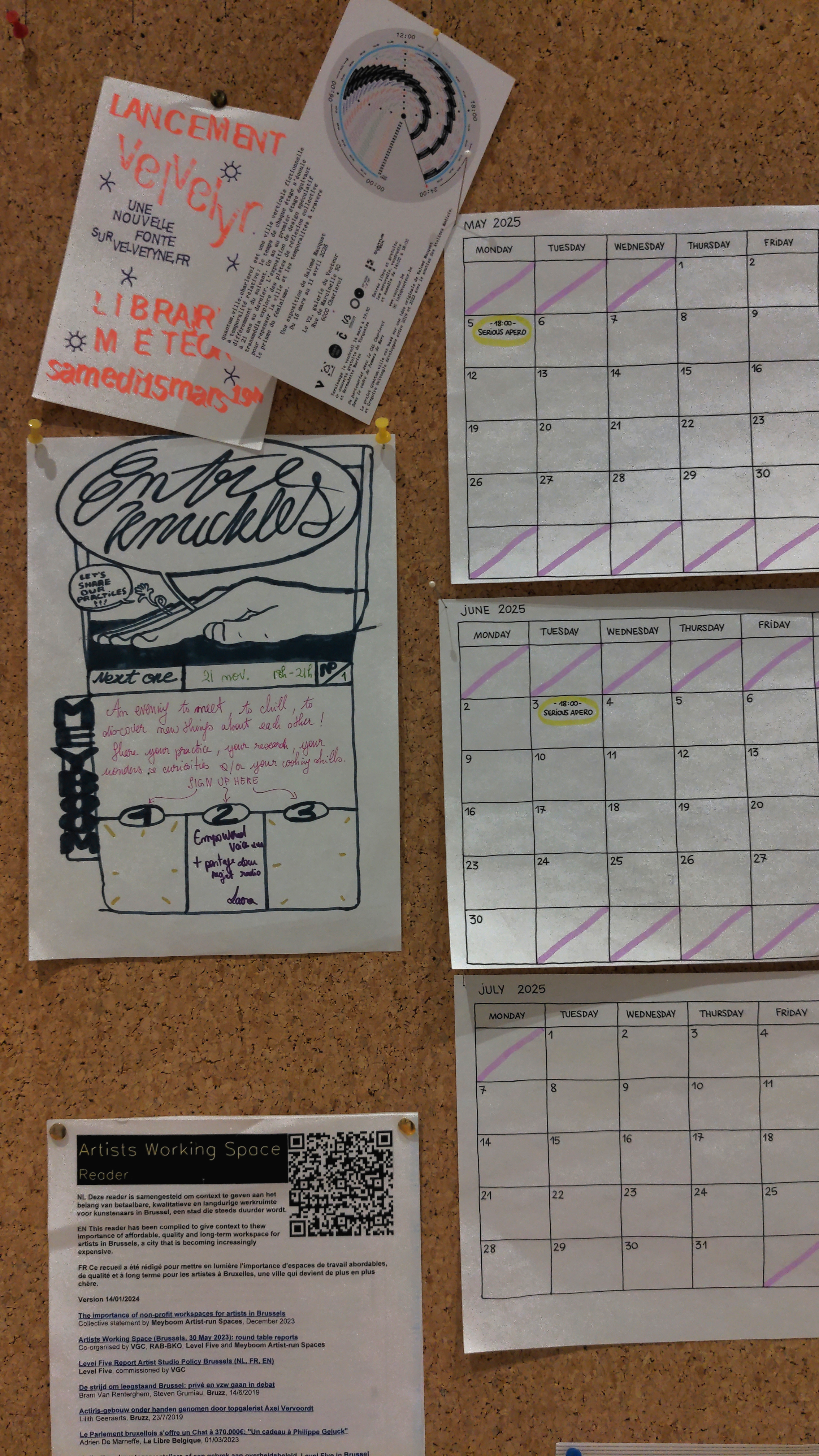 Lunch gossips, shared knowledge on co-running the space, seeing each others at events outside of Meyboom, exchanging about collaborators in commons such as institutions, schools, or other collectives. This also make such space not only space where we work, but spaces where information travels. But receiving requiere a particular attention maybe, because it is never through official announcment, it's more like folklore. Folk is people, and lore is knowledge; folklore to me is the knowledge that lives firstly in between the people. That is to say the knowledge that is not in the academic books, not in the official documents, not in the manifest, not in the institutions, but in people talks and actions. I believe folkloric network are very powerfull, probably because they are very difficult things to formalize.