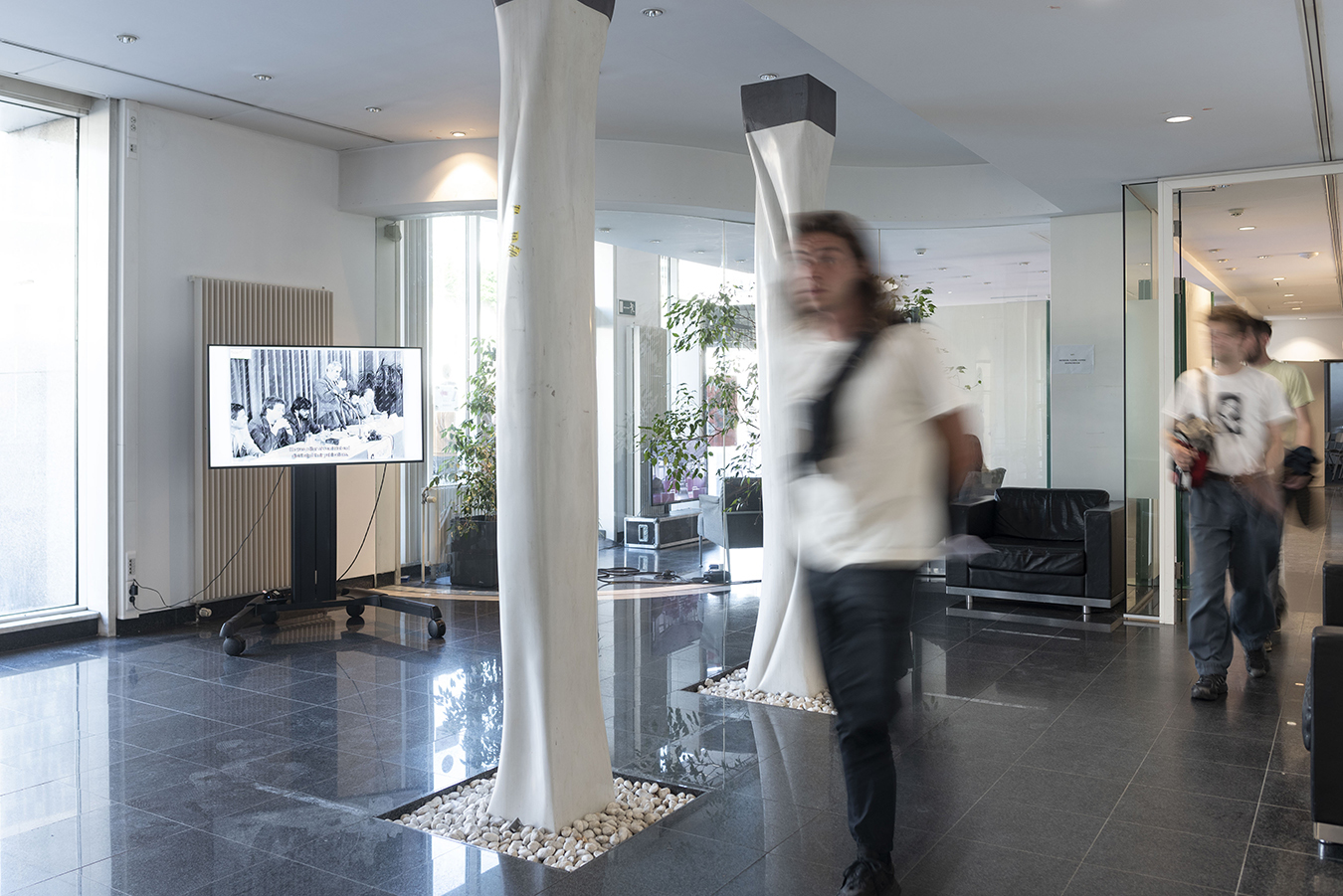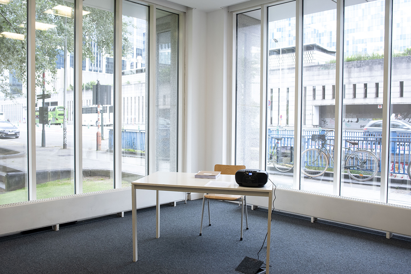 Our Fluid Territories brings together the work of 8 artists with a background of migration but at home in Brussels. The venue is an off space whose housing, a former bank office from 1992, doubles as a materialisation of the marginalised capitalism that haunts some of the practices on view.