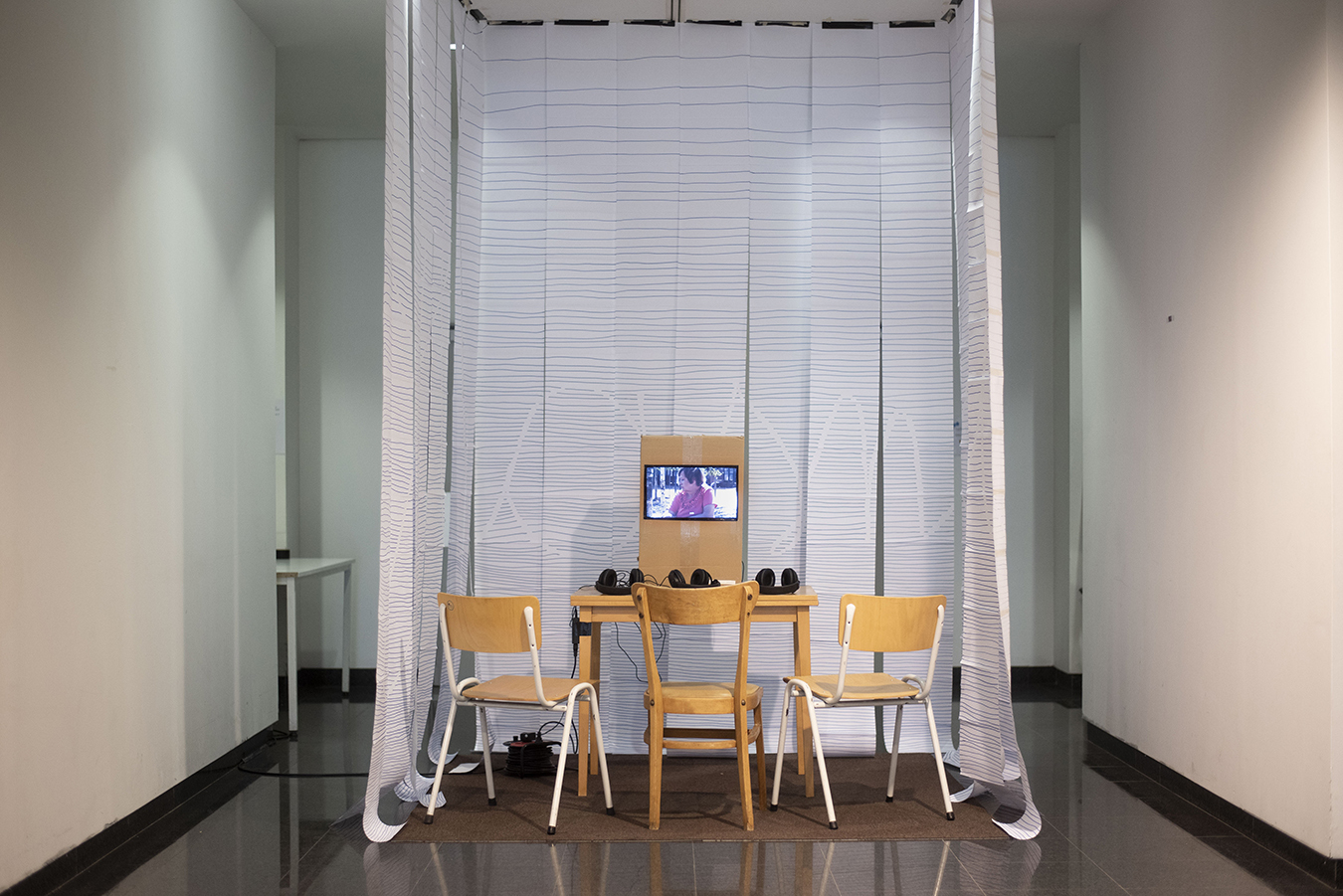 A film programme features works by Eric Baudelaire, Justin Bennett, Milena Bonilla, Alina Cristea, Ken Kobland, Ulrike Knorr, Vladimir Perovic, Rune Peitersen & Mikica Andrejic, Meggy Rustamova, Anri Sala, Shelly Silver, and Ingel Vaikla. Each film is screened every day.