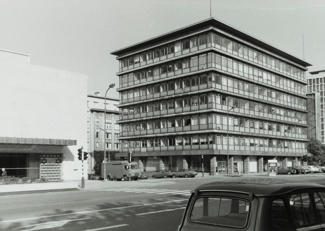 Photo: Boulevard Pachécolaan, Brussels. Congress Station and Meyboom building on the right. 1980. Credit: Patrimoine.Brussels